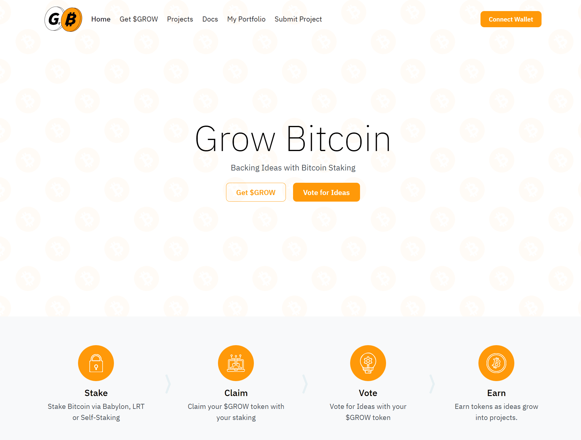 The Grow Bitcoin platform lets you vote for your favorite Bitcoin projects and earn rewards. To make the vote, you need to prove your BTC holdings by locking different versions of BTC, be it the native BTC, or the BTC staked in Babylon protocol, or the wrapped versions of BTC.